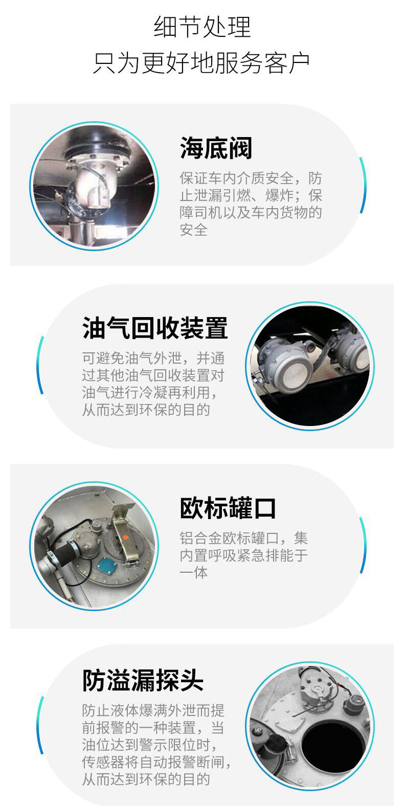 配备大流量齿轮泵和大口径卸料阀,可以快速装卸料,从而提升作业效率,配备工具箱,模具冲压防滑型爬梯;选装后部封头卸料阀,选装两侧上走台和折叠护栏。