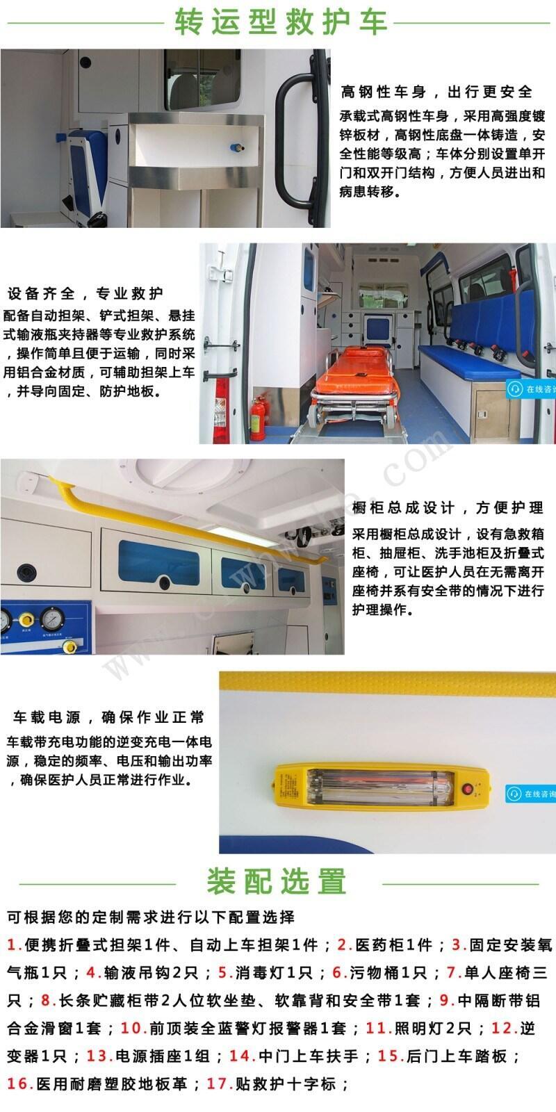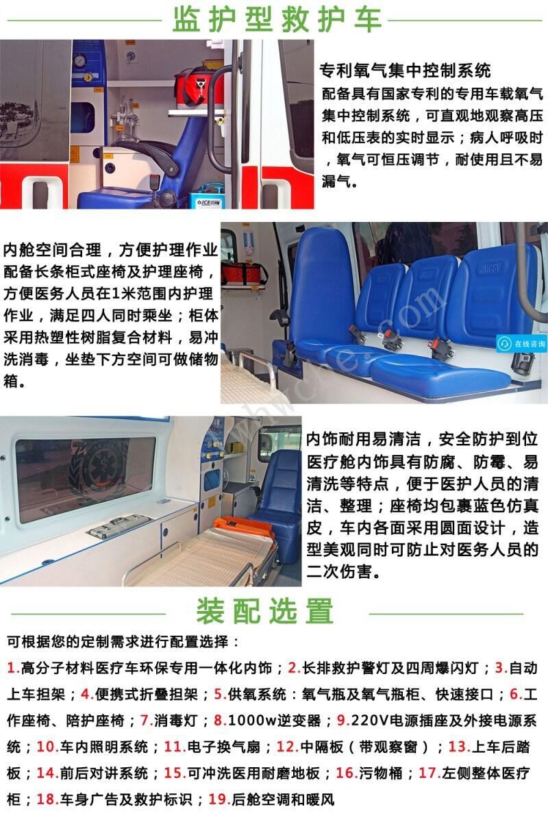 我公司生产制造的救护车现有转运型救护车、监护型救护车、负压型救护车可满足不同客户需求。欢迎您来选购!