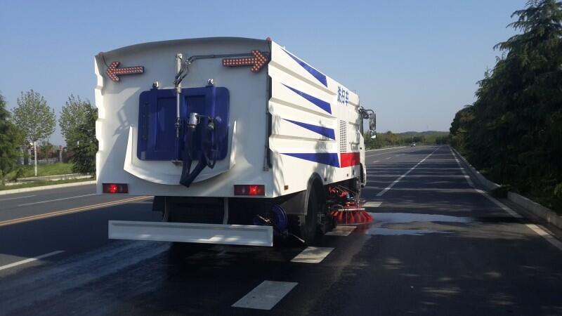 道路清扫车是集路面清扫、垃圾回收和运输为一体的新型高效清扫设备。简单的说就是在专用汽车底盘上改装道路清扫功能的扫地车型,车辆除底盘发动机外,另外加装一个副发动机,四把扫刷由液压马达带动工作,带风机、垃圾箱、水箱等多种配套设备。这种全新的车型可一次完成地面清扫、马路道牙边清扫、马路道牙清洗及清扫后对地面的洒水等工作,适用于各种气候和不同干燥路面的清扫作业。