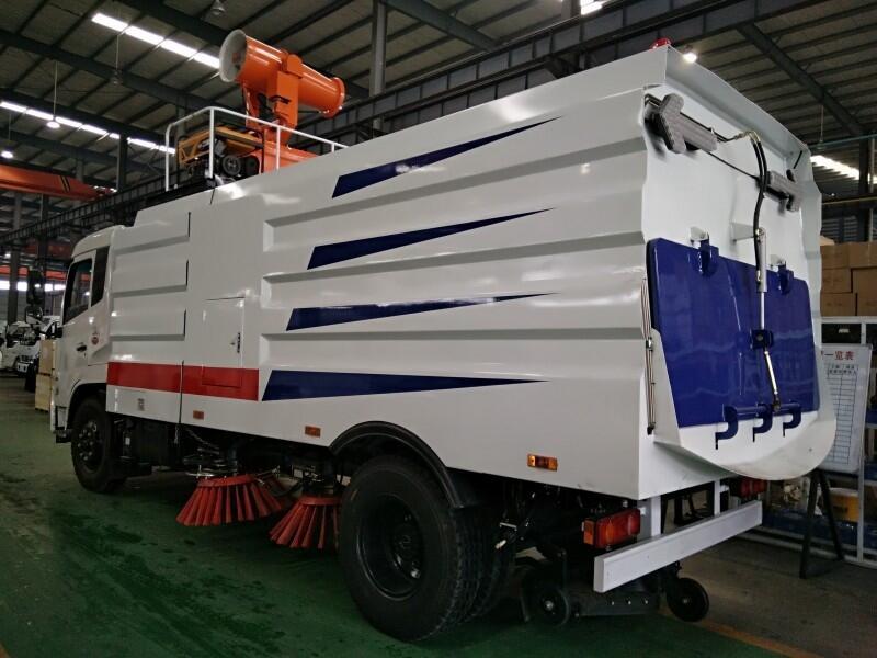 1.大型道路清扫车报价采用吸扫混合的方式收集垃圾,湿式除尘、电液控制,液压倾翻卸料的作业方式对路面进行清扫作业。