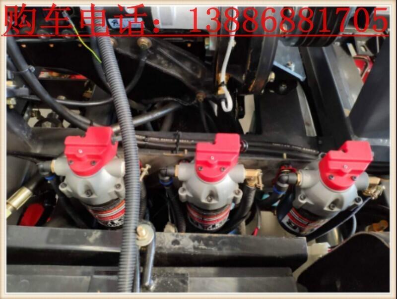 产品配置:五十铃副发动机(JX493G,57KW),伊顿(美国)摆线马达,海普瑞斯电磁阀组,控制开关(法国施耐德),北京风机,液压油管(广州天河),洒水电子水泵(新西山水泵)液压缸(上海润岛)。