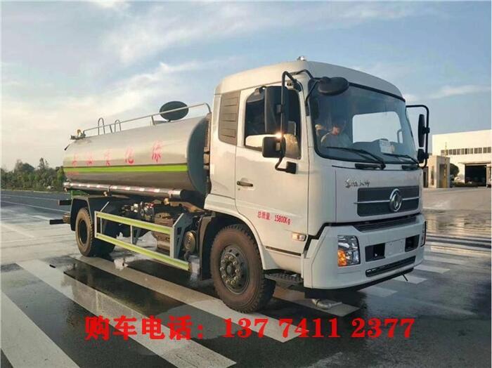 洒水车前冲(喷)后洒,带侧喷,罐体后带工作平台,平台上安装绿化洒水炮,洒水炮可旋转,可连续调成直冲状、大雨、小雨、毛毛雨,带安全护栏,配备全国质量评比名的杭州威龙大功率专用洒水泵,泵可自吸自排,安装过滤网,带消防接口,可通过消防栓进水,带自流阀,随车选装20米绿化卷盘,可喷洒农药,罐体金属漆。