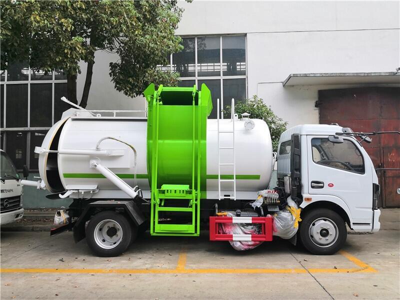 餐厨垃圾车是用来收集转运餐馆食堂酒店饭店餐厨垃圾的一种专用汽车。根据外观样式分为罐式餐厨垃圾车和厢式餐厨垃圾车,根据功能结构不同分为简易的收集转运车和带有滤干挤干功能的多功能餐厨垃圾车等。可以根据需要搭配240L垃圾桶,或者专用泔水桶使用,带有挂桶提升机自动收集倾倒,可以根据需要选装吸污车功能或者自清洁功能,选装箱体加热功能,选装真空抽吸功能,接受客户配置定制。