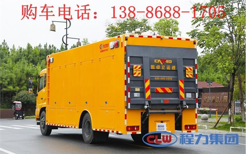 设备采用东风底盘改装,总质量12.5吨,发动机功率127kw,排放标准达到国五标准,3.8米轴距,带空调,方向助力,涉水深度600mm。