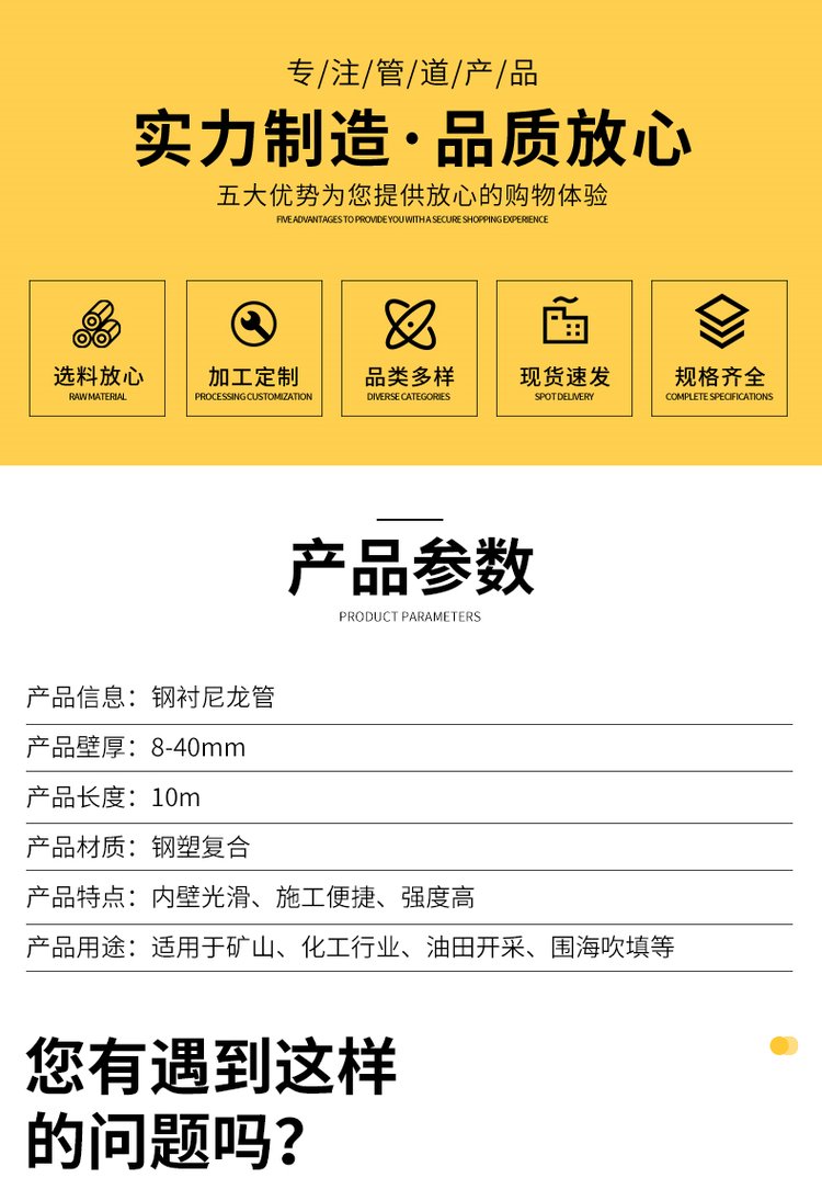 贝斯邦供应钢衬尼龙管改性耐压尼龙三通耐高温耐腐蚀防紫外线