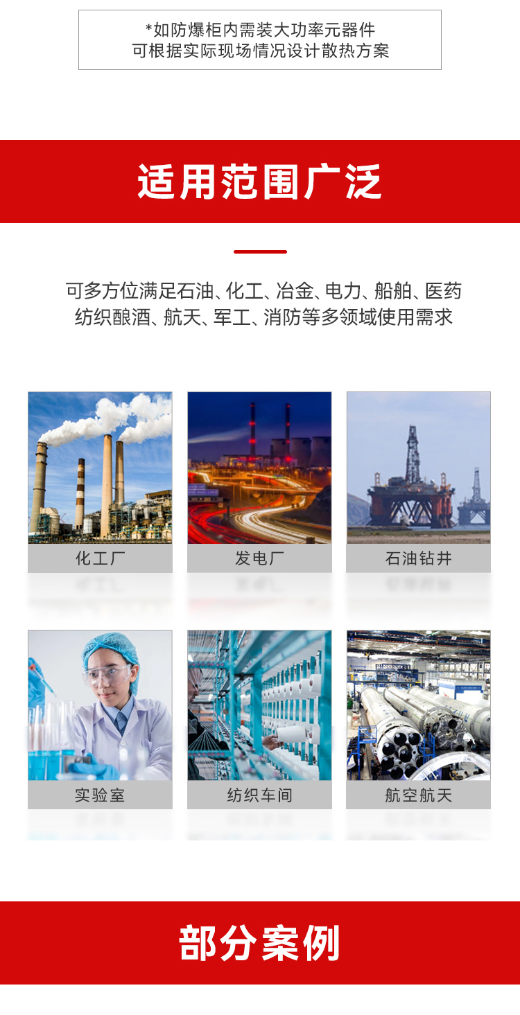 适用场景 | 化工、炼油、石油开采、天然气、医药、纺织、海洋石油平台、冶金、消防等爆炸性危险场所 | ||