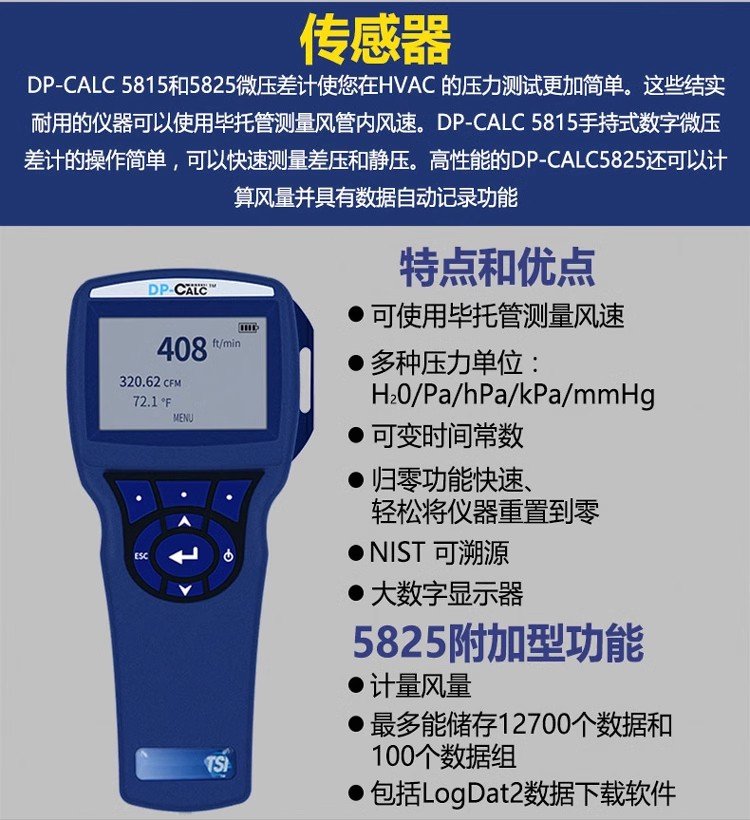 提赛TSI5815/5825数字微压差计高精度压差测试仪压力仪静压风压仪 品牌美国TSI提赛
