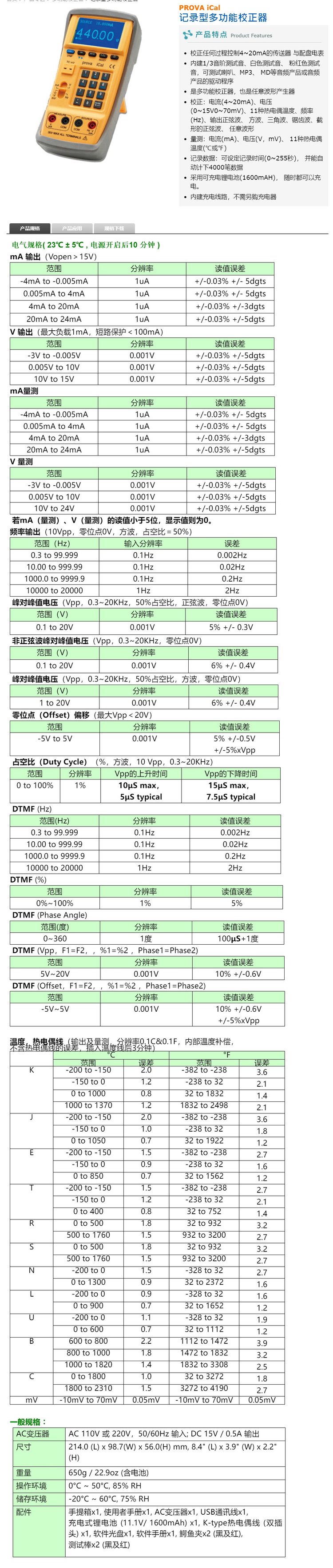 泰仕PROVA iCal/100/123记录型多功能校准仪4-20mA回路温度校正器 品牌 | 泰仕TES | ||