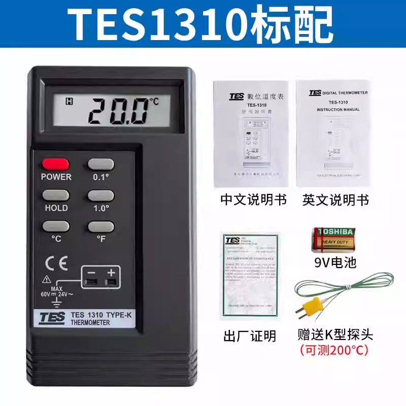 中炫供应泰仕TES温度计TES-1310测温仪手持式接触式热电偶温度表