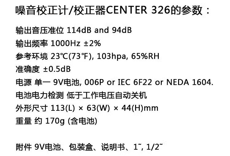 准确性 | ±1.5dB (在参考音压94dB @1KHz) | ||