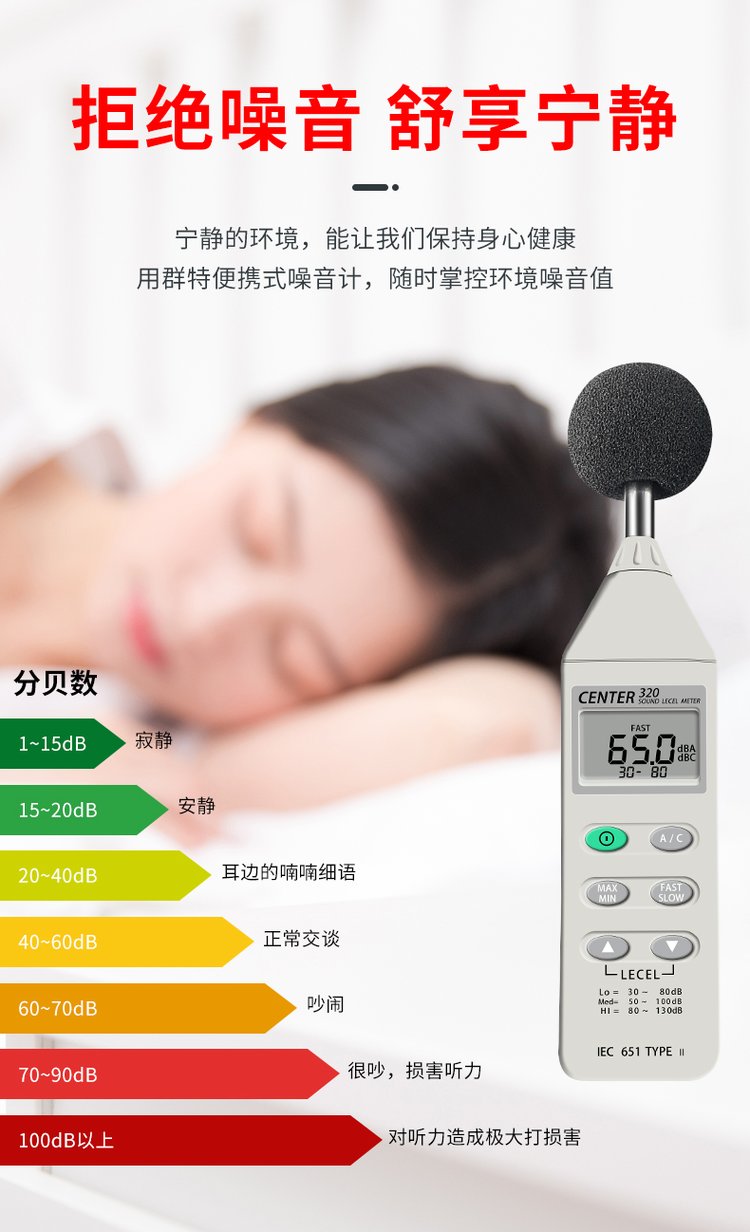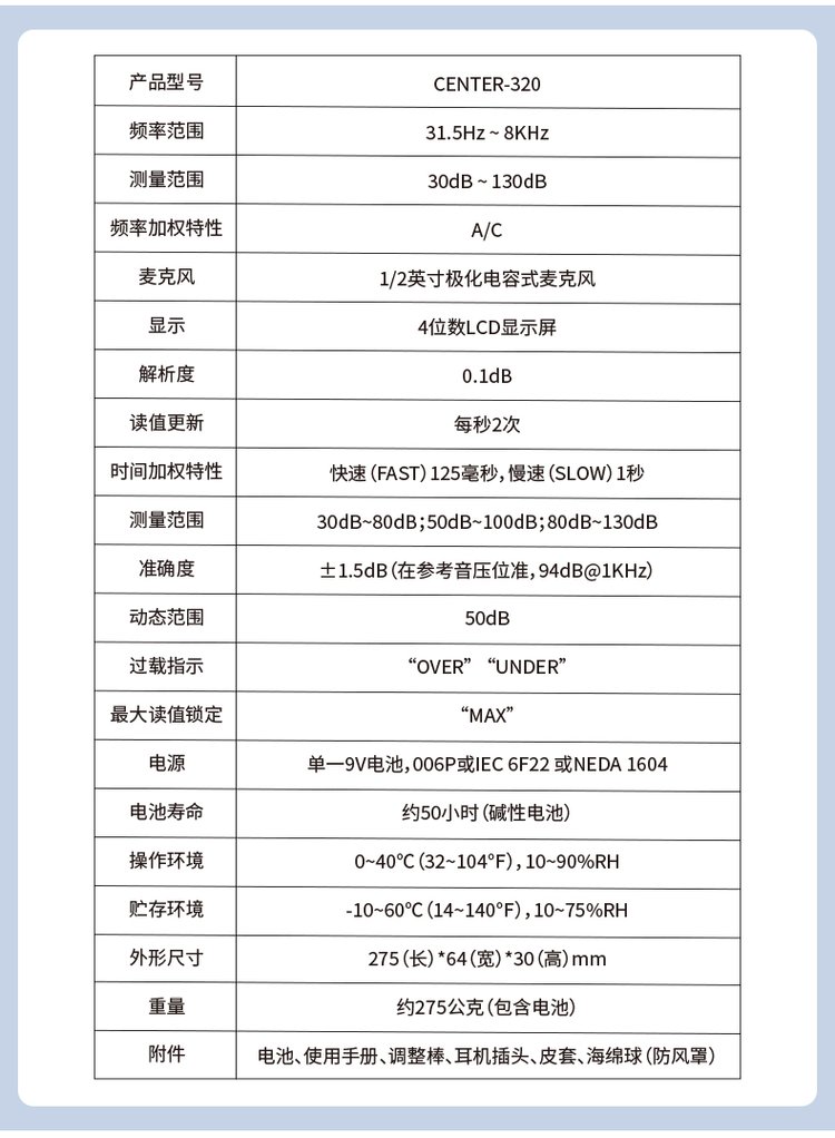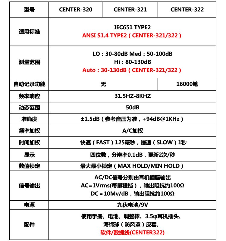 群特CENTER-320/321数字噪音计CENTER-322记录式声级计分贝噪声仪 品牌 | 台湾群特CENTER | ||