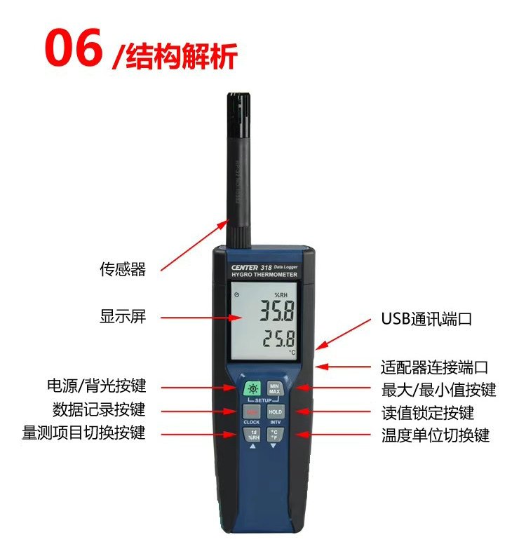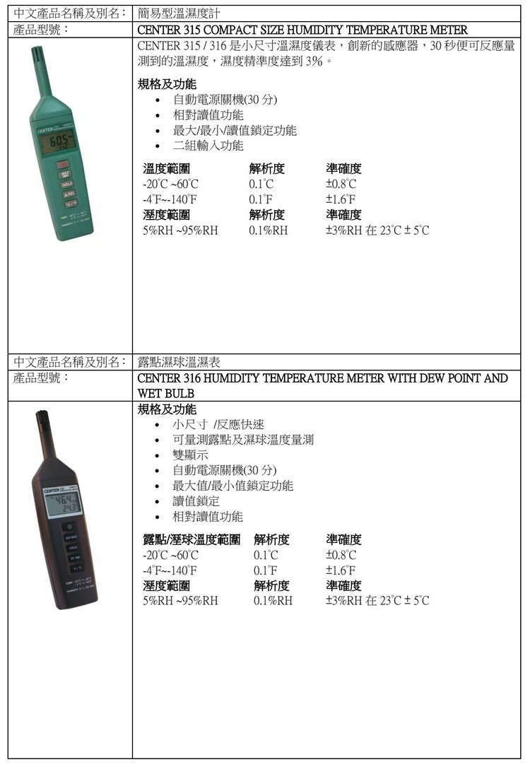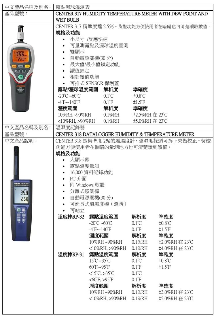 群特CENTER-315/316/317温湿度表318记忆式高精度温湿度计湿度仪 品牌 | 台湾群特CENTER | ||