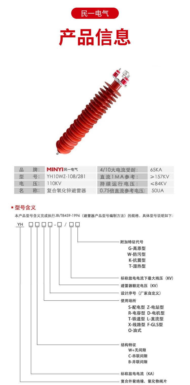YH10WZ-100/260 电站型高压氧化锌避雷器 优质选材 源头工厂供应 品牌 | 民一 | ||