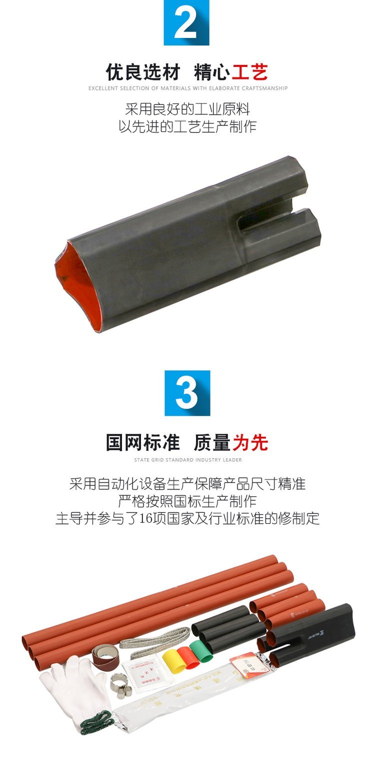 热缩电缆终端头俗称热缩电缆头,广泛用于35KV及以下电压等级的交联电缆或油浸电缆的终端上。与传统电缆附件相比具有体积小、重量轻、安全可靠、安装方便等特点。产品符合GB11033标准,长期使用温度范围为-55℃~105℃,老化寿命长达20年,径向收缩率≥50,纵向收缩率