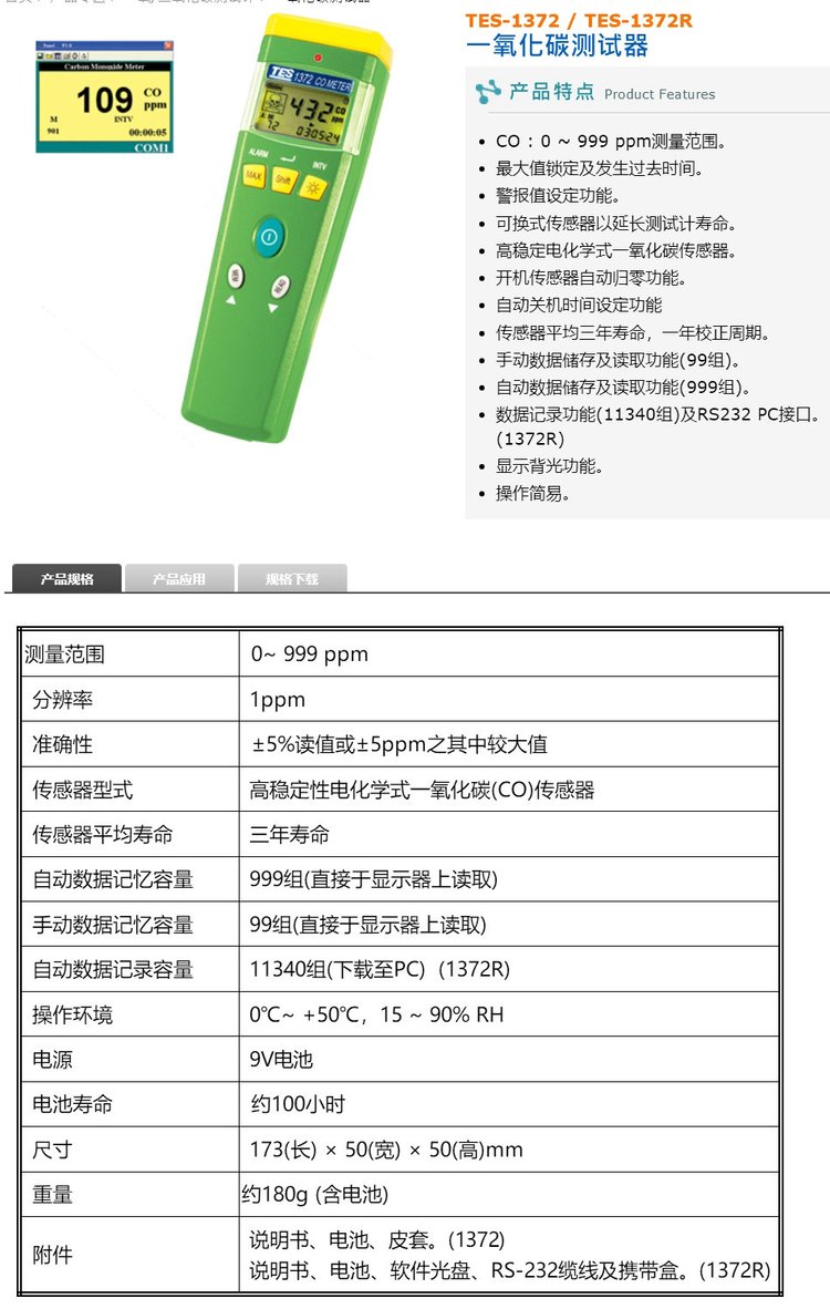 泰仕TES-1372/TES-1372R一氧化碳测试仪CO检测仪0-999ppm带记录 品牌 | 泰仕TES | ||