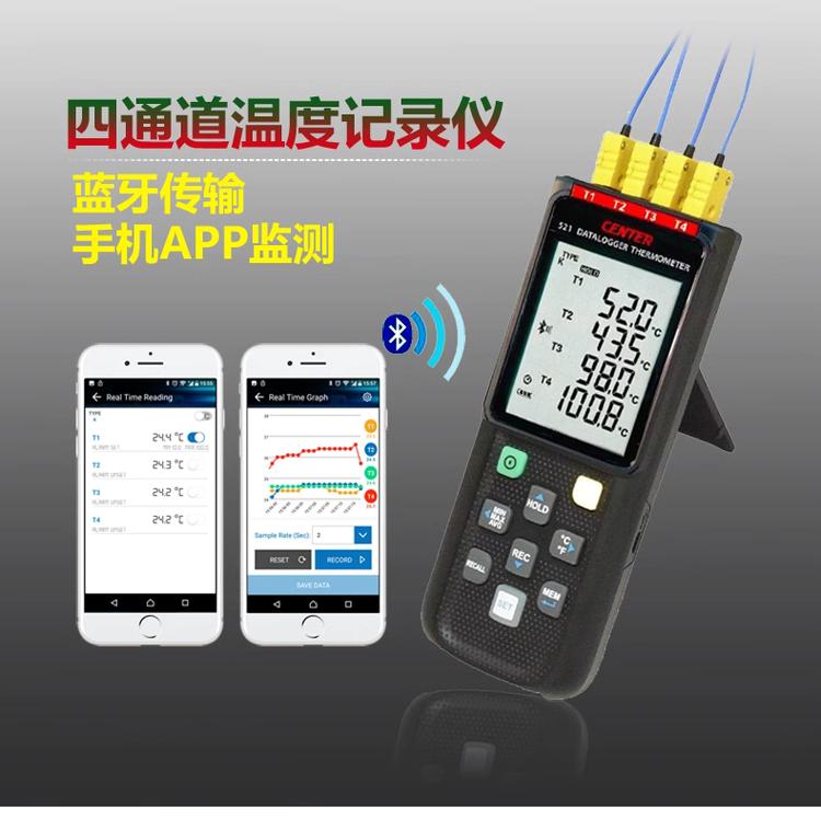 台湾群特CENTER-520/521四通道热电偶温度计蓝牙温度记录测试仪 品牌 | 台湾群特CENTER | ||