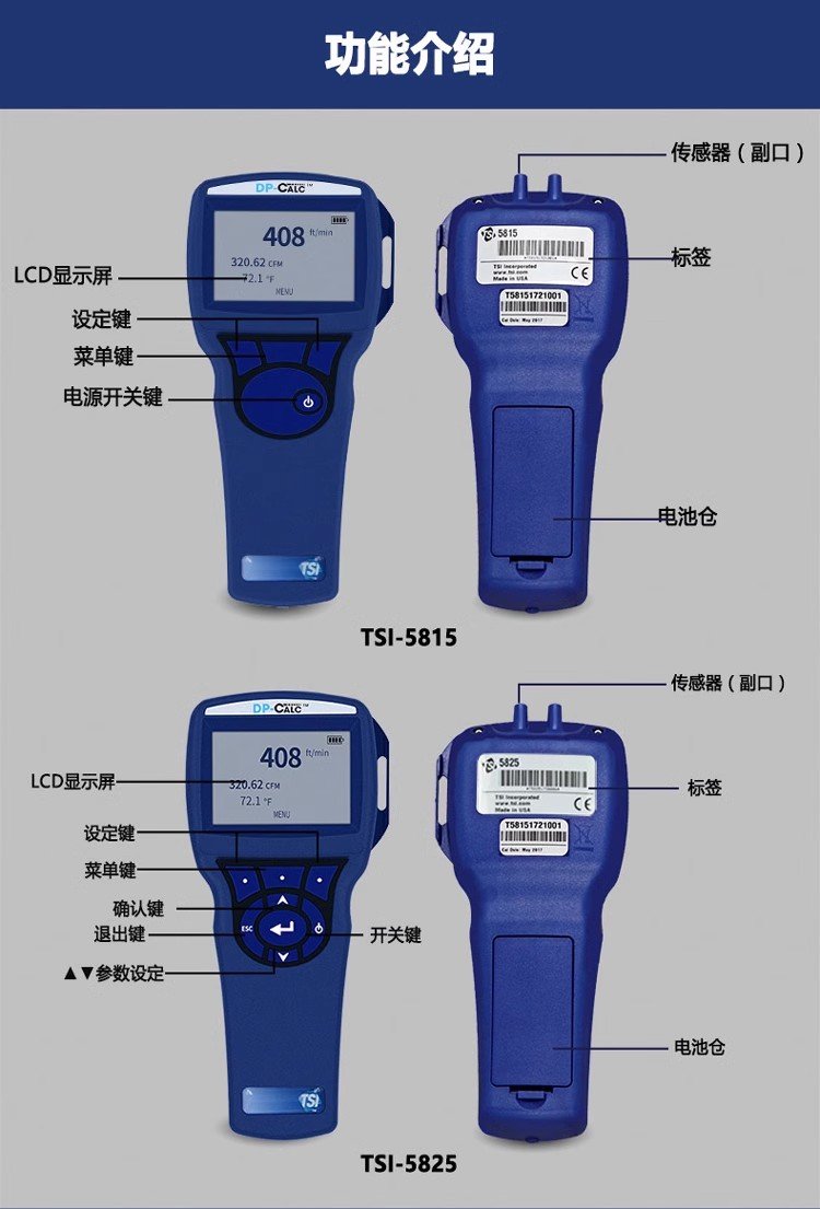 提赛TSI5815/5825数字微压差计高精度压差测试仪压力仪静压风压仪 品牌 | 美国TSI提赛 | ||