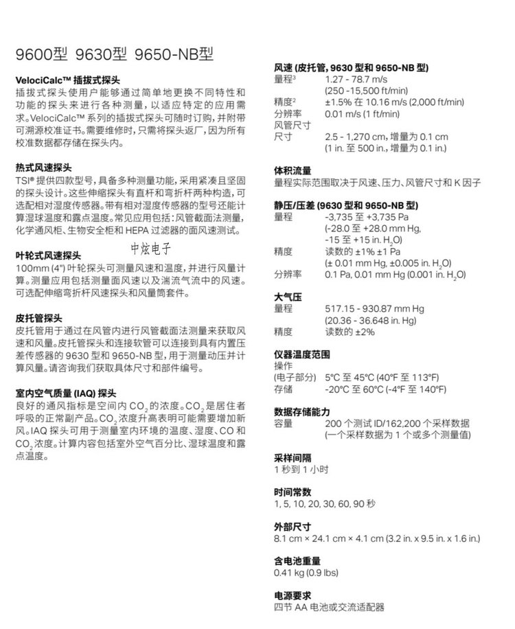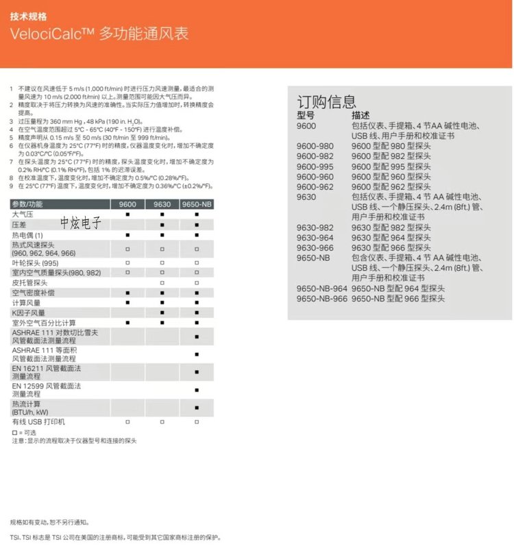 美国TSI-9600/TSI-9630/TSI-9650-NB多功能参数通风表风速风量仪 品牌 | 美国TSI提赛 | ||