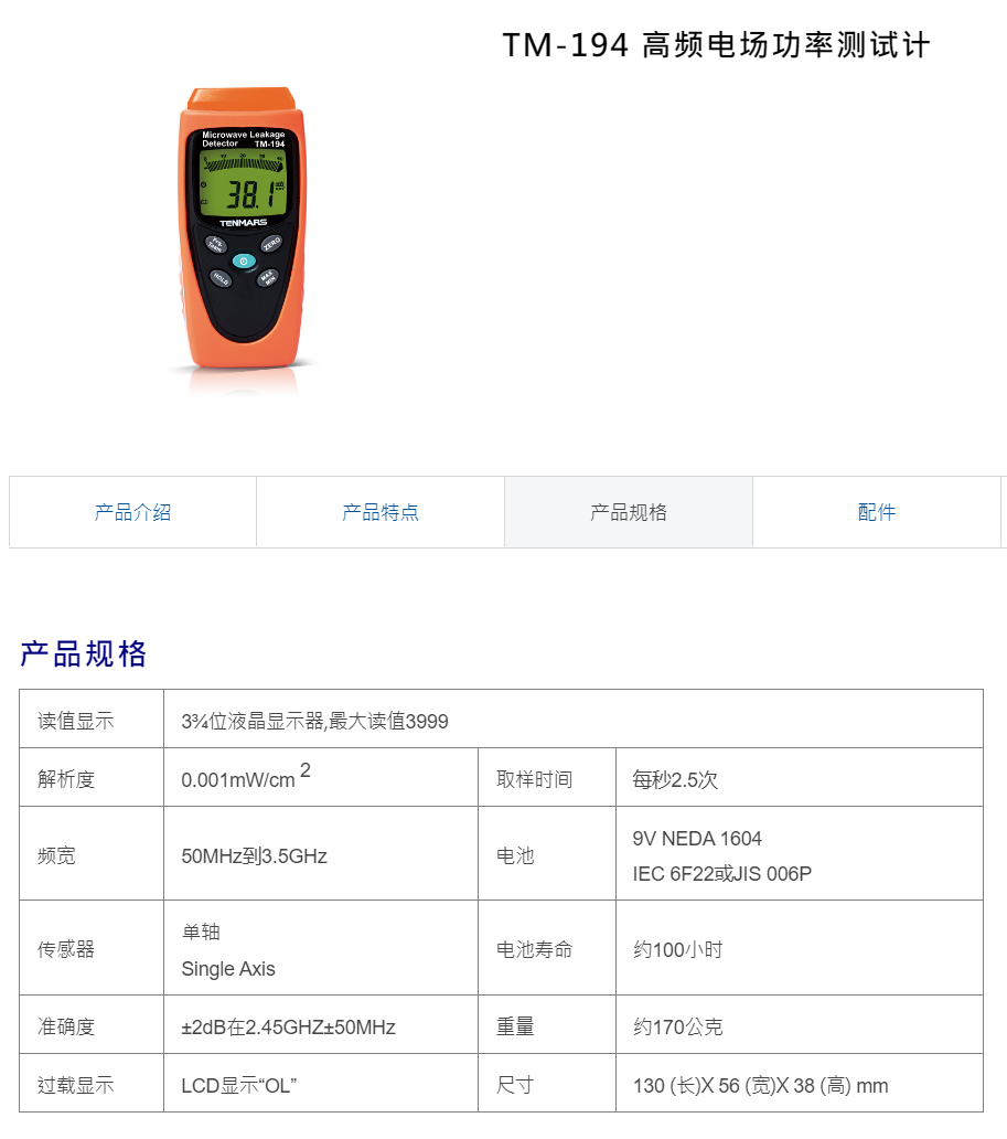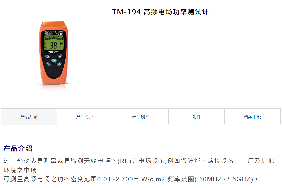 TM-194高频电场电磁波功率测试计微波炉泄漏检测仪泰玛斯TENMARS