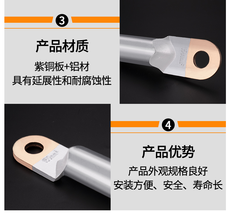铜铝接线端子DTL国标单孔铜铝鼻 摩擦焊接铜铝线耳线鼻子宇益电气