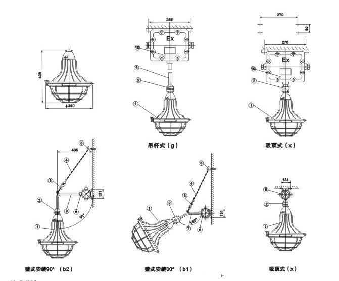 安装方式:壁挂式,吊杆式,吸顶式,护栏式,法兰式