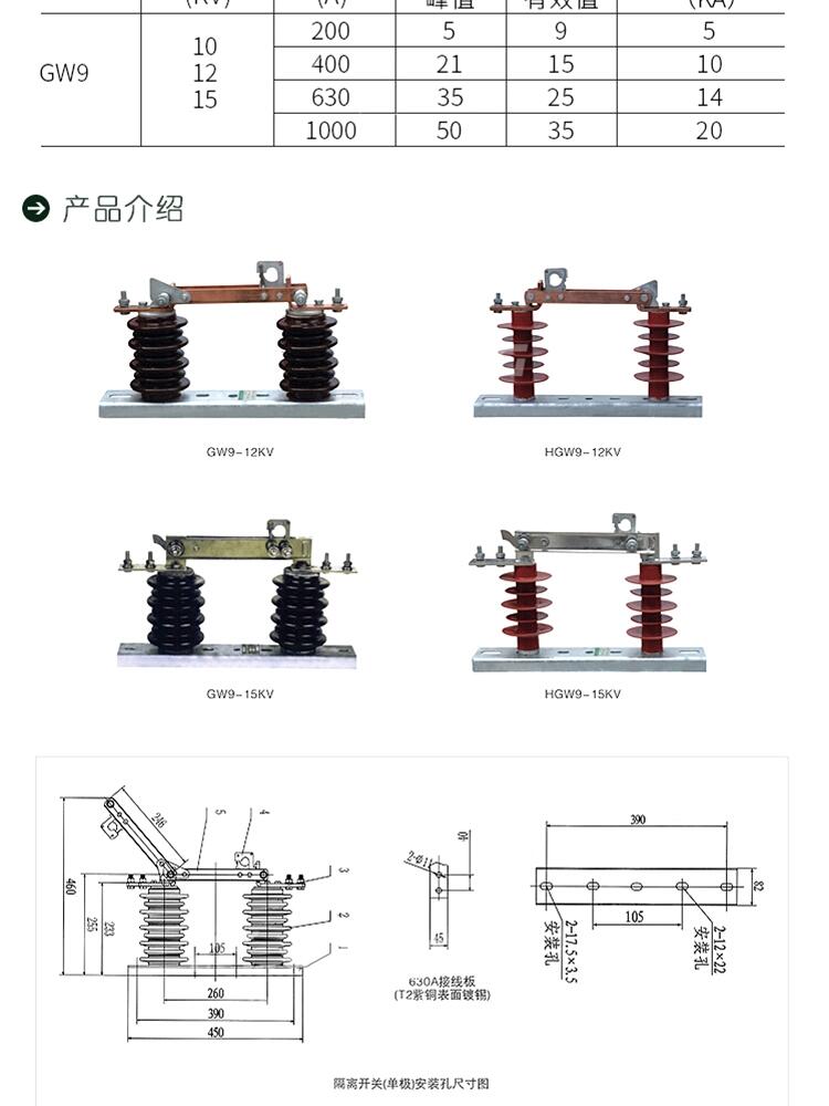 厂家供应GW9-10-400A/630A隔离开关户外高压刀闸开关