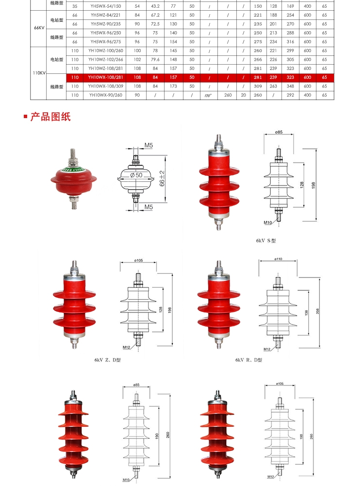 YH10WX-108/281线路型氧化锌避雷器