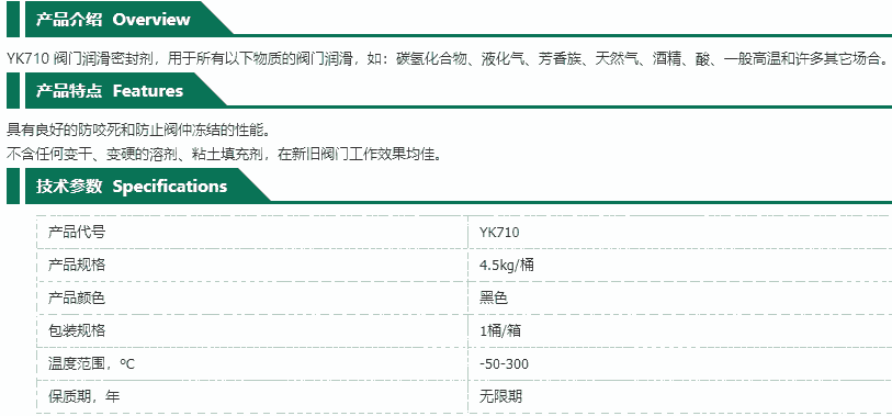 宇凯阀门润滑密封剂YK710 4.5kg桶