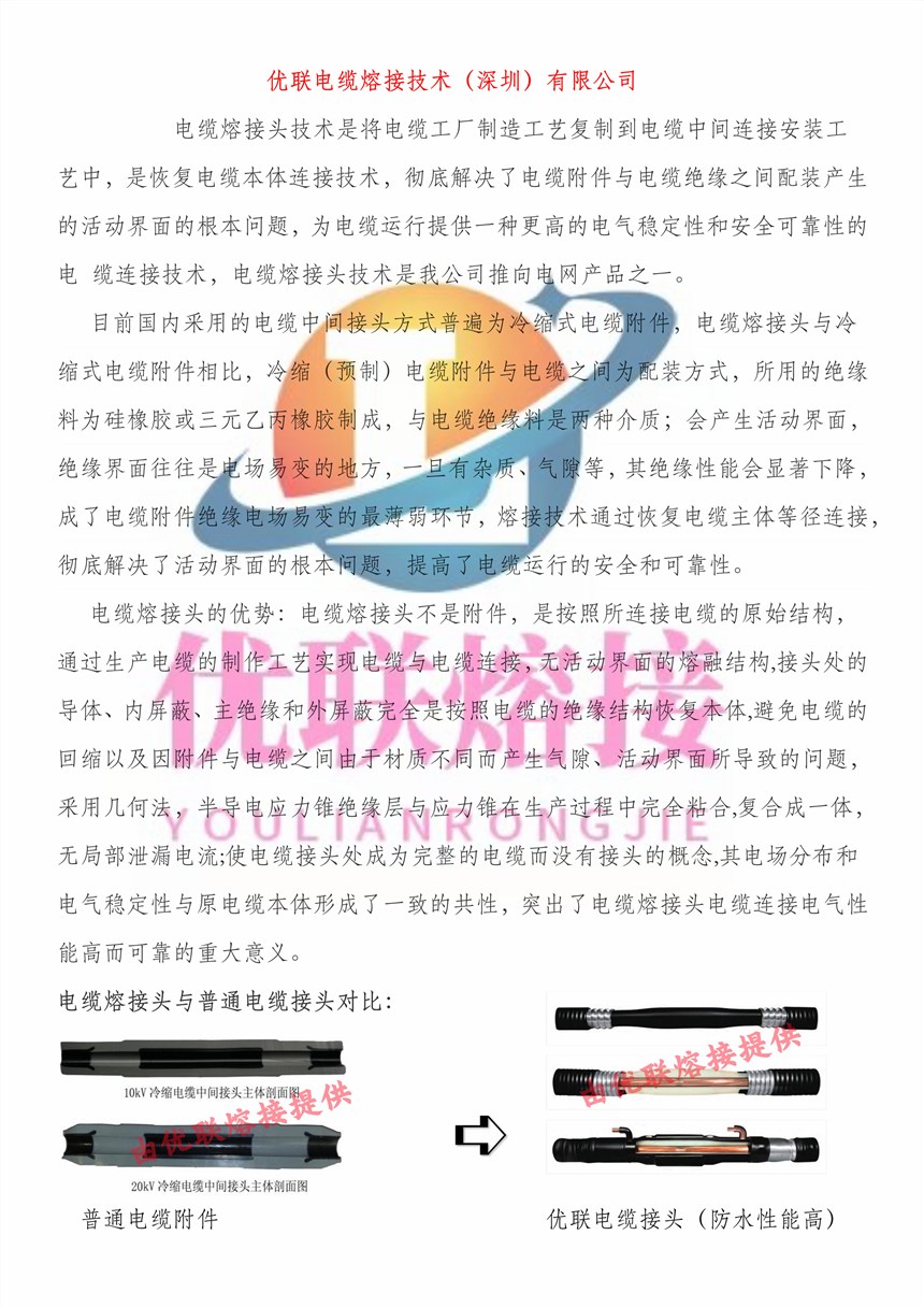 (2)绝缘可靠 要有满足电缆线路在各种状态下长期安全运行的绝缘结构,并有一定的余量,YLJ优联电缆熔接产品是与电缆同等寿命的品质。
