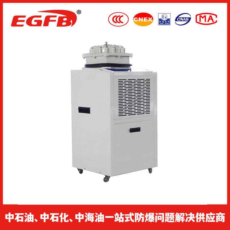 防爆除湿机主要是由热交换器、压缩机、盛水器、风扇、控制器等部件所组成,它的工作原理主要是利用风扇将空间中的潮湿空气抽入到除湿机内,之后再通过热交换器将空气中的水分冷凝成水珠,之后再将已经变得干燥的空气排出机外,在这样重复的循环中完成室内空气湿度的降低,除湿机的运用有效的降低了物品潮湿、霉变的现象。