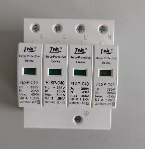 在三相四线制系统中,三条相线和一条零线对接地线之间均接有保护器。在正常情况下保护器处于高电阻状态,当电网因雷击或者其它原因出现浪涌过电压时,保护器将立即在纳秒级时间内迅速导通,将浪涌过电压引入大地,从而保护了电网上的用电设备。当该浪涌电压通过保护器,且消失后保护器重新变到高电阻状态,从而不影响电网的正常。