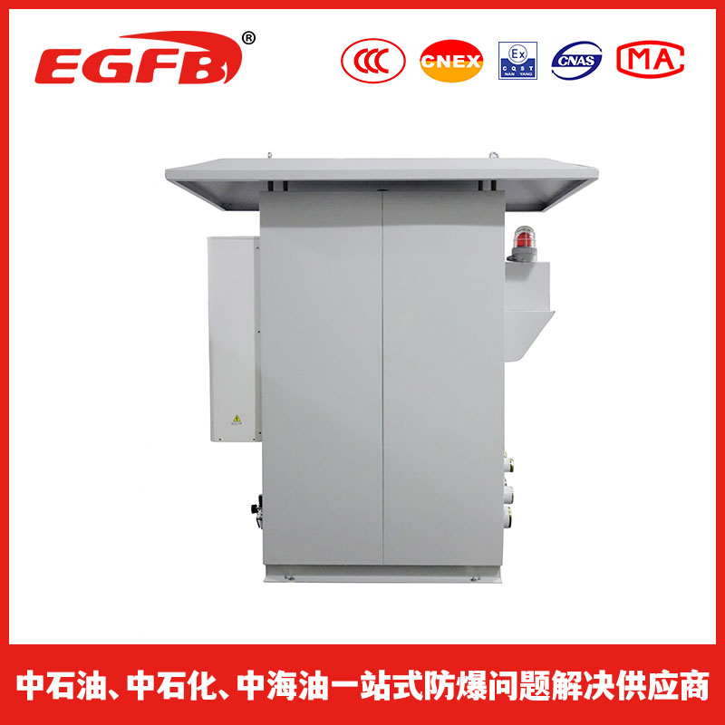采用介质隔离点燃源的防爆措施。即:把用户所用的电器元件安装在一个充满正压洁净气体的柜体内,使外部环境中易燃易爆的混合性气体无法接触到电器元件在正常工作时所产生的电火花或危险温度,从而达到电器防爆的目的。