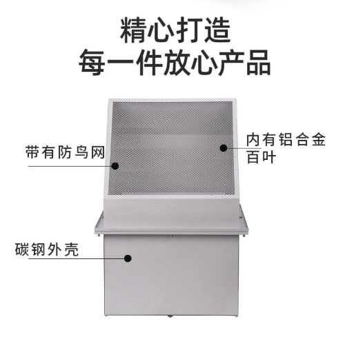 附件选配:重力式止回风阀(可确保车间在风机不开时保持与室外隔绝),订货时注明。