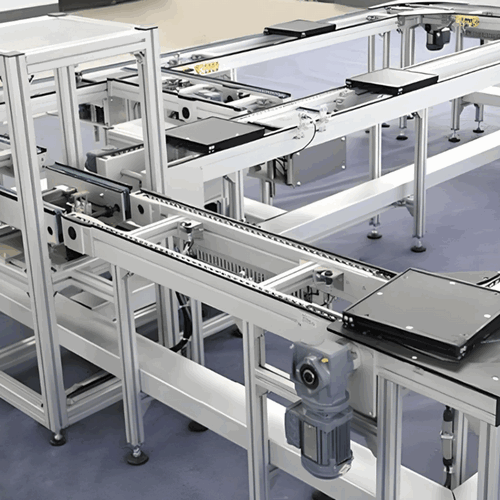 常规场景下速度范围2-20m/min,高速需求(如电子组装线)可配置?双链条驱动系统?,速度波动控制在±0.03m/s内?。