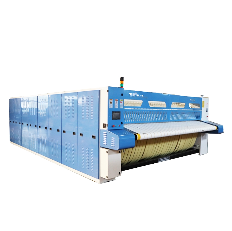 10.高速烫平机 酒店宾馆被套床单烫平机设备采用 PLC 及触摸屏控制,精确显示实际运行情况