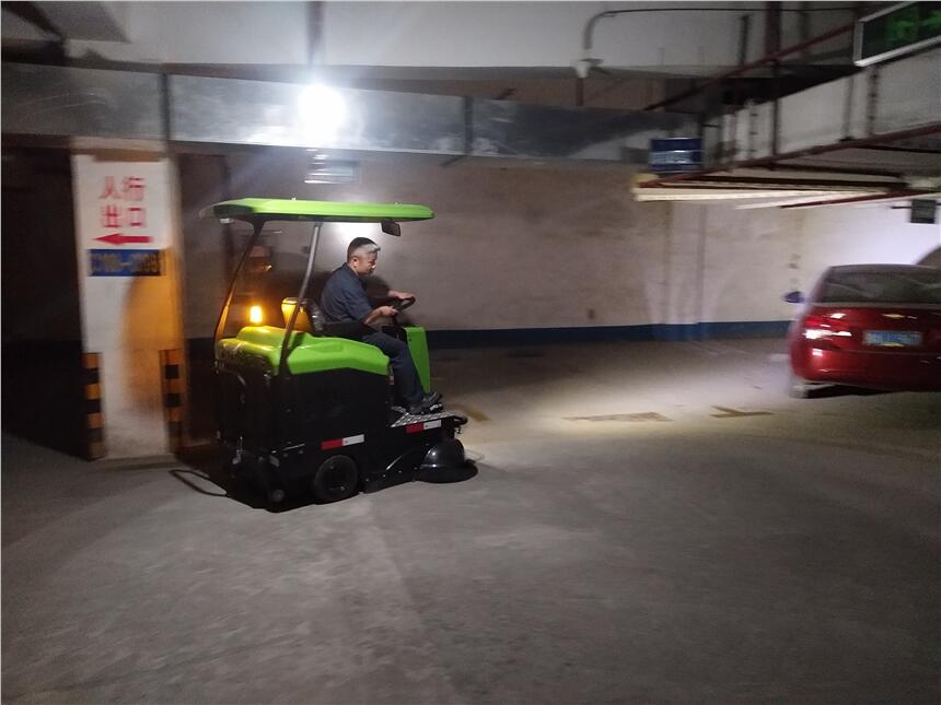 地下停车场面积大,如果单靠人工清洁需要投入大量的人力物力,人工成本非常高。这时可以考虑用扫地车来将地面上的垃圾清扫干净之后再使用驾驶式洗地机来进行彻底清洁,驾驶式清洁模式速度快,效率高,投入一台机器就相当于8-10个人工的工作量,节省时间和人工成本。