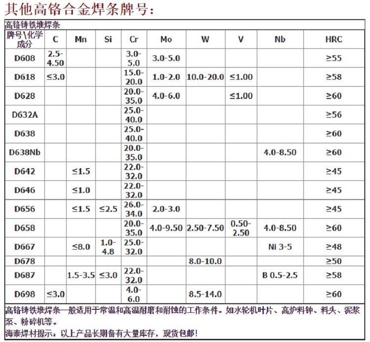 D638Nb高铬铸铁堆焊焊条 ? ?高铬合金耐磨焊条