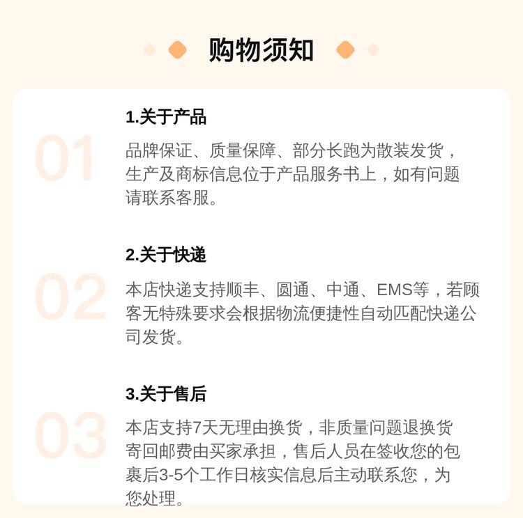 发货方式 | 支持顺丰、圆通、中通、EMS等 | ||