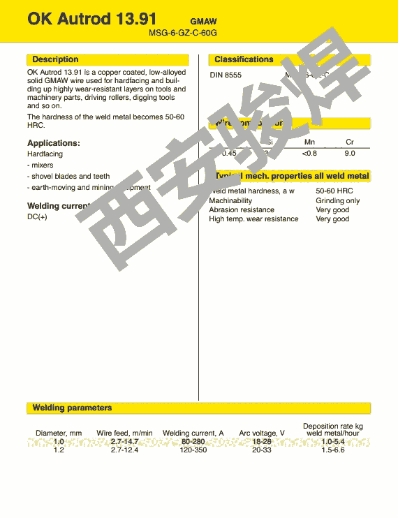 OK Autrod 13.91瑞典伊萨耐磨焊丝OK Autrodur 56 GM堆焊焊丝盾构机刀盘耐磨焊丝MSG-6-GZ-C-60G耐磨合金焊丝