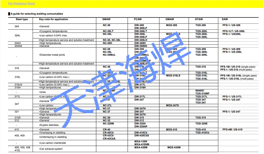 用于对接焊及角焊,适用于SUS310钢。天津海焊