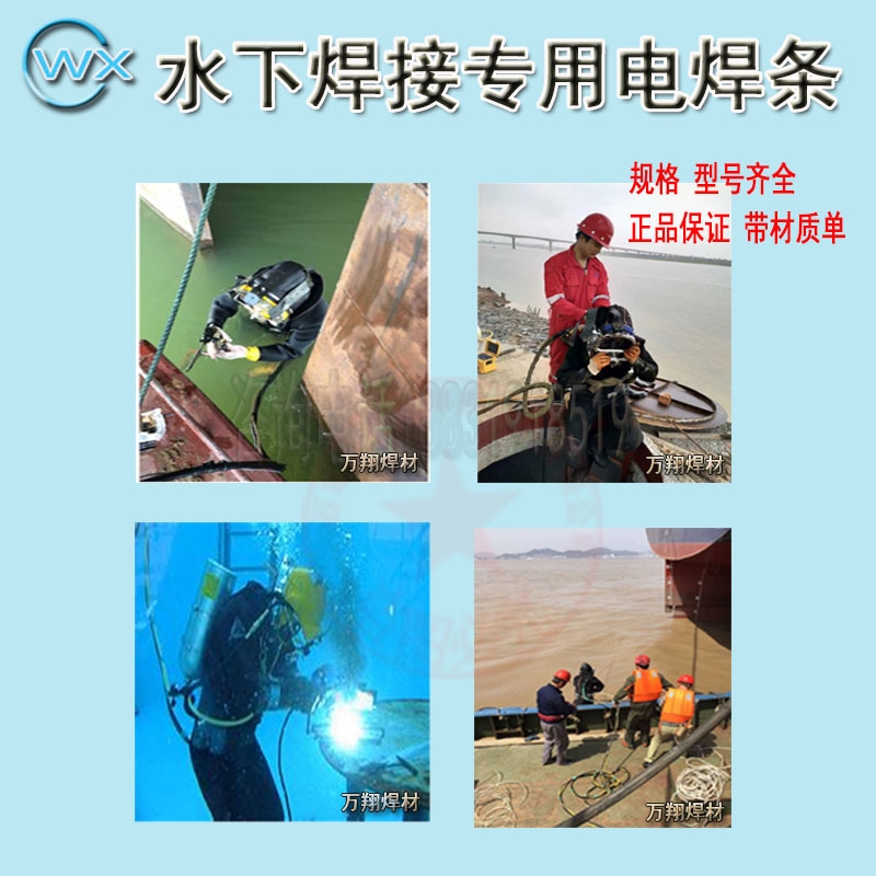 该水下焊条采用绝缘涂料作为防水涂层?具有优良的水下焊接工艺性能、绝缘性能和防水性能。具有电弧稳定、熔敷效率高、焊缝成形好、焊缝性能优良?可进行水下平焊和立向下焊接等特点。在淡水或海水中采用倚焊或摆动焊均可获得高质量的焊缝。适用于屈服强度为410MPa的低碳钢及D32一类低合金钢等非重要水下结构的湿法焊接,也可用于海上油气管道、船舶、港口设施、桥梁和城建水管的水下湿法焊接和维修。使用水深可达40米。