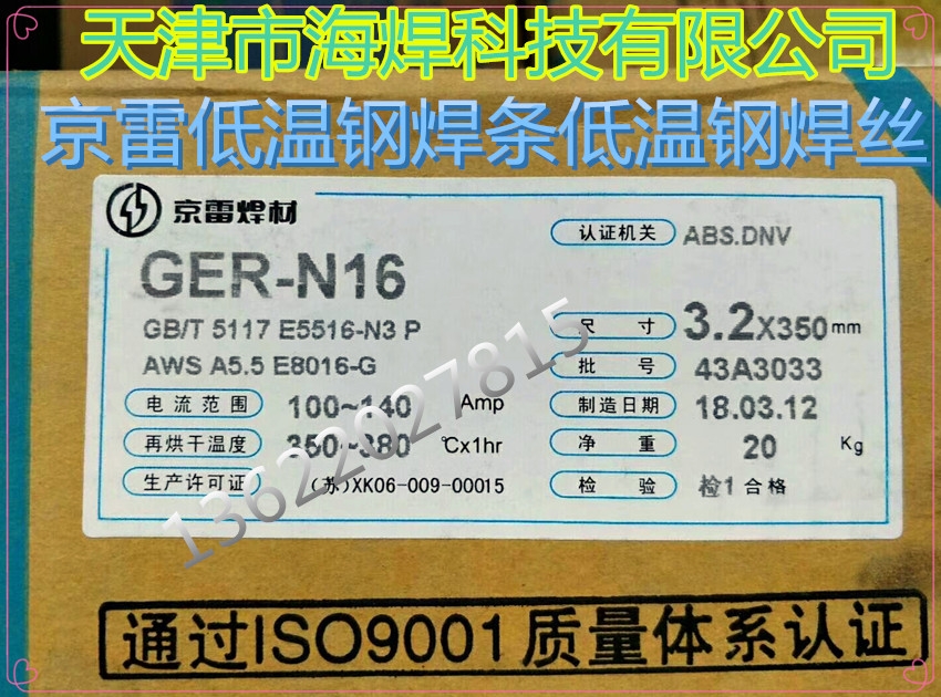京雷GER-N16焊条E8016-G石化生产设备焊接专用低温钢焊条