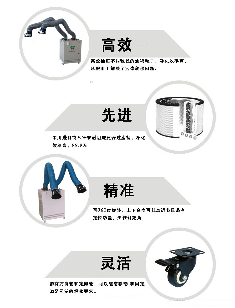 焊烟净化器移动式焊接打磨粉尘烟尘回收设备脉冲单双臂焊烟净化器