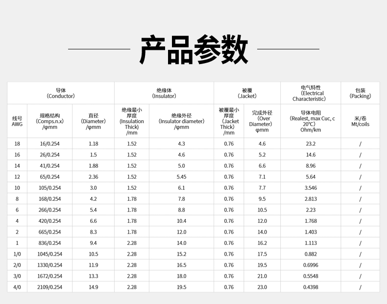 弯曲半径 | ≥4xΦ(Φ为直径) | ||