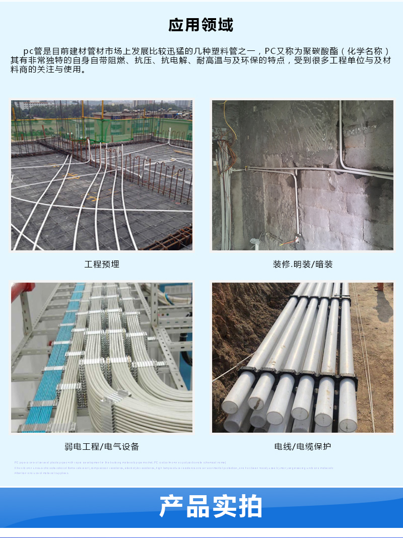用途 | 工程预埋,电线电缆保护,弱电工程排线布线,电气配管,明装暗装穿线管 | ||