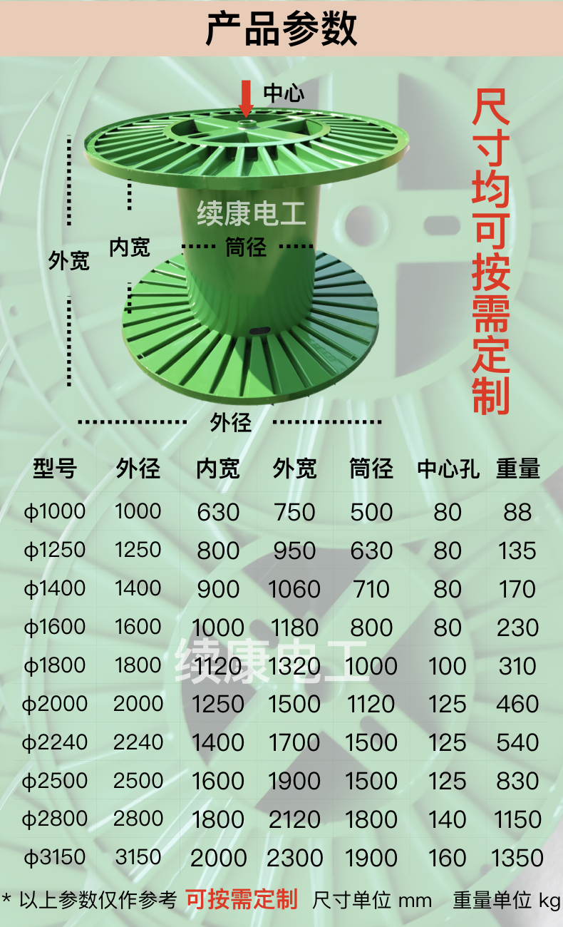 续康线盘线缆盘PND1250-PND3150瓦楞线盘