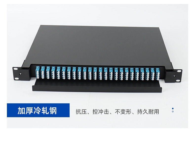 1U96芯LC四联抽拉式光缆终端盒加厚24口96芯光纤配线架LC单模
