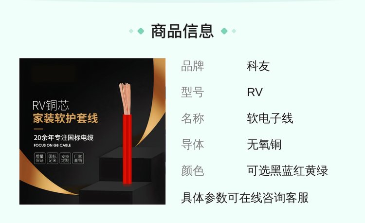 RV家装软护套线铜芯聚氯乙烯绝缘材质电线单芯硬线