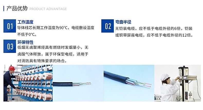 3、?? 环保特性:低烟无卤聚烯烃具有燃烧时发烟量小,无卤酸气体释放,属于环保型电缆,适用于对消防具有特殊要求的场合