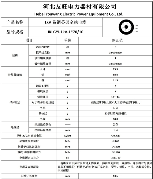 四、70绝缘架空线生产厂家型号齐全直销价格产品参数及样本图片: